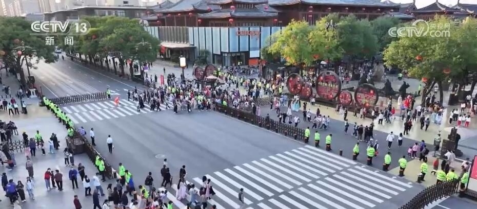西安大唐不夜城是很多游客到西安必打卡的景點(diǎn)之一。今年中秋國慶假期頭兩天,大唐不夜城的日均客流量達(dá)到40萬人。聚起了人氣之后,怎樣保證數(shù)十萬游客能夠平安順暢出行,成為景區(qū)面臨的第一道難題。