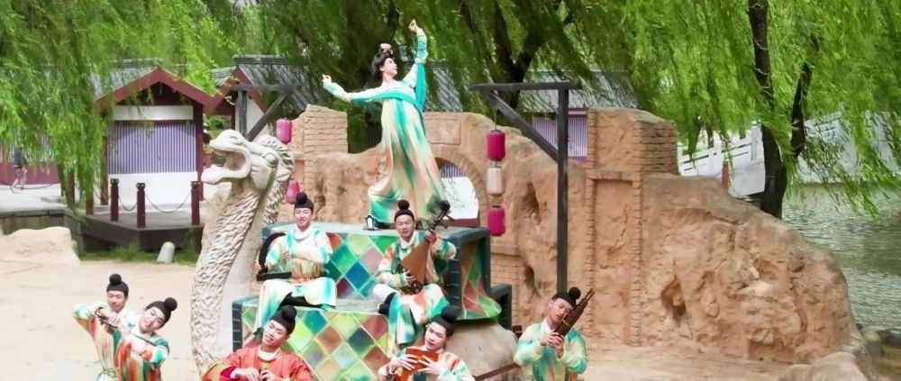 于歷史深處探尋,中華文明綿延傳承,始終在兼收并蓄中煥發(fā)蓬勃生機(jī)與活力。2023年,大唐芙蓉園推出一組“壁畫再現(xiàn)”演藝,盛唐舞樂,回響穿越千年。