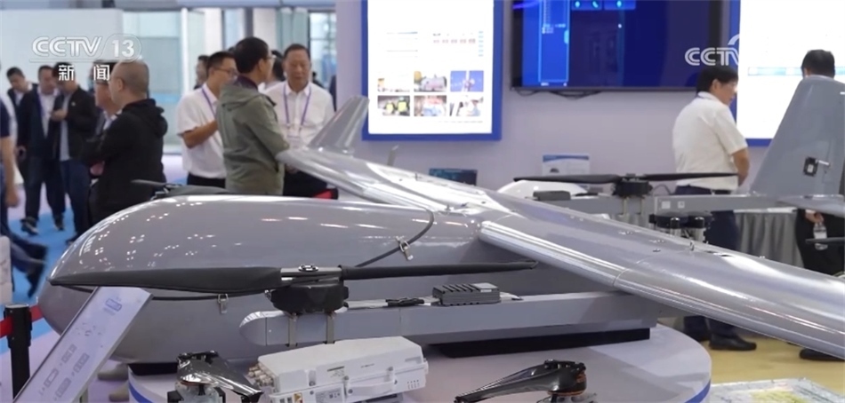 ?????? 在展會的未來產(chǎn)業(yè)館,“上天入?!钡母呖萍夹庐a(chǎn)品讓眾多觀眾駐足體驗?,F(xiàn)在您看到的就是一架垂直起降式的衛(wèi)星通信無人機,它搭載了國產(chǎn)的亞太衛(wèi)星技術(shù),目前已經(jīng)被廣泛應(yīng)用于應(yīng)急救援、公安消防、水利農(nóng)林等各個領(lǐng)域,這個機器的翼展只有六米,可以適應(yīng)各種地形的起降。?