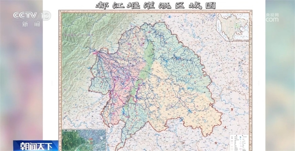 四川省都江堰水利發(fā)展中心副主任 吳鑒:這幅圖是在新中國(guó)成立之前的一張都江堰灌溉的平面圖。從圖上可以顯示,(當(dāng)時(shí))整個(gè)都江堰只灌溉了14個(gè)縣282萬(wàn)畝的農(nóng)田。這是我們今年新繪制的都江堰灌溉區(qū)域圖。從這個(gè)圖上可以看到,以都江堰作為頂沖點(diǎn),整個(gè)都江堰灌區(qū)變得更大了,扇面進(jìn)一步擴(kuò)大了。