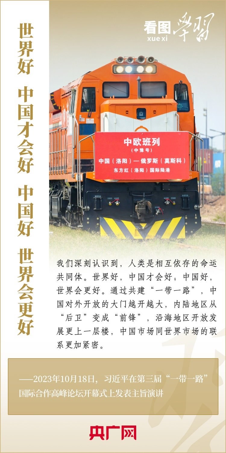 10月18日,習(xí)近平主席出席第三屆“一帶一路”國際合作高峰論壇開幕式并發(fā)表主旨演講,深刻總結(jié)共建“一帶一路”倡議提出十年來取得的發(fā)展成果和經(jīng)驗(yàn),就中國支持高質(zhì)量共建“一帶一路”提出具體行動(dòng),強(qiáng)調(diào)要迎接共建“一帶一路”更高質(zhì)量、更高水平的新發(fā)展,推動(dòng)實(shí)現(xiàn)世界各國的現(xiàn)代化,建設(shè)一個(gè)開放包容、互聯(lián)互通、共同發(fā)展的世界,共同推動(dòng)構(gòu)建人類命運(yùn)共同體!一起來學(xué)習(xí)!