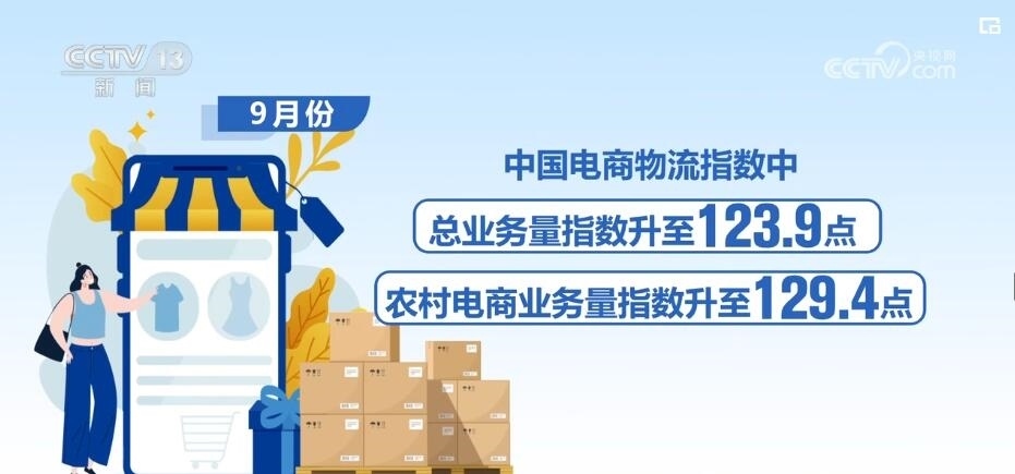 數(shù)據(jù)顯示,今年前三季度,線上電商物流保持旺盛活力,特別是進(jìn)入9月份,農(nóng)村以及全領(lǐng)域電商物流需求穩(wěn)步回升。9月份,中國電商物流指數(shù)中的總業(yè)務(wù)量指數(shù)、農(nóng)村電商業(yè)務(wù)量指數(shù)分別升至123.9點(diǎn)、129.4點(diǎn)的年內(nèi)較高水平。