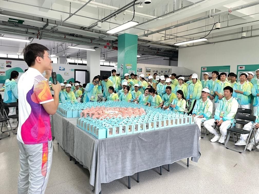 “我們?cè)缟衔妩c(diǎn)從學(xué)校出發(fā),晚上七點(diǎn)左右從場(chǎng)館離開(kāi)。這段時(shí)間雖然辛苦,卻很有意義,也結(jié)識(shí)到了不少朋友。”鮑明聰擦擦頭上的汗珠笑著說(shuō)。