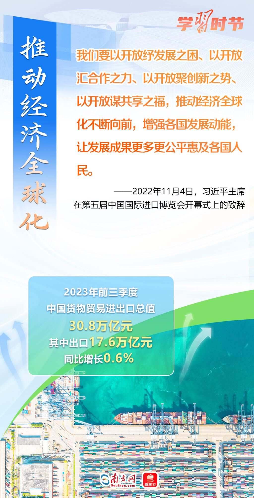 11月5日至10日,第六屆中國國際進(jìn)口博覽會(huì)將在上海舉行。這個(gè)由習(xí)近平主席親自謀劃、親自部署、親自推動(dòng)的世界上首個(gè)以進(jìn)口為主題的國家級(jí)展會(huì),目前已成為舉世矚目的貿(mào)易盛會(huì)、開放合作的重要平臺(tái)、全球共享的國際公共產(chǎn)品。第六屆進(jìn)博會(huì)舉行在即,讓我們通過一組海報(bào),重溫習(xí)近平主席在過去五屆進(jìn)博會(huì)上的重要講話,深刻認(rèn)識(shí)高水平對(duì)外開放的時(shí)代意義與關(guān)鍵作用。