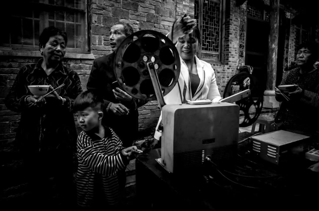 1983年,鄉(xiāng)里成立了電影放映隊,曹毅成了隊長,還參加了電影培訓(xùn)班,扎扎實實地學(xué)了放映技術(shù)、電工等好多課程,成了專業(yè)的放映員。那時片源少,一張片子各個鄉(xiāng)排期輪流放映,讓曹毅最開心的事,就是坐上幾個小時的公交車去縣里拿膠片。有時揣著膠片回來的路上就忍不住想樂,哪回放新電影都像打仗一樣,人山人海,得防著別碰壞了放映機,還得留心會有哪個村連夜來搶放映機。“總有一萬人,銀幕前后都是人,背面都有人看。在稻田里面把那稻子割完了以后,電影就在稻場里面放,不然地方不夠大?!笨諝庵酗h著稻谷的香味,不少人會盤腿坐在地上,扎扎實實看完一部電影。