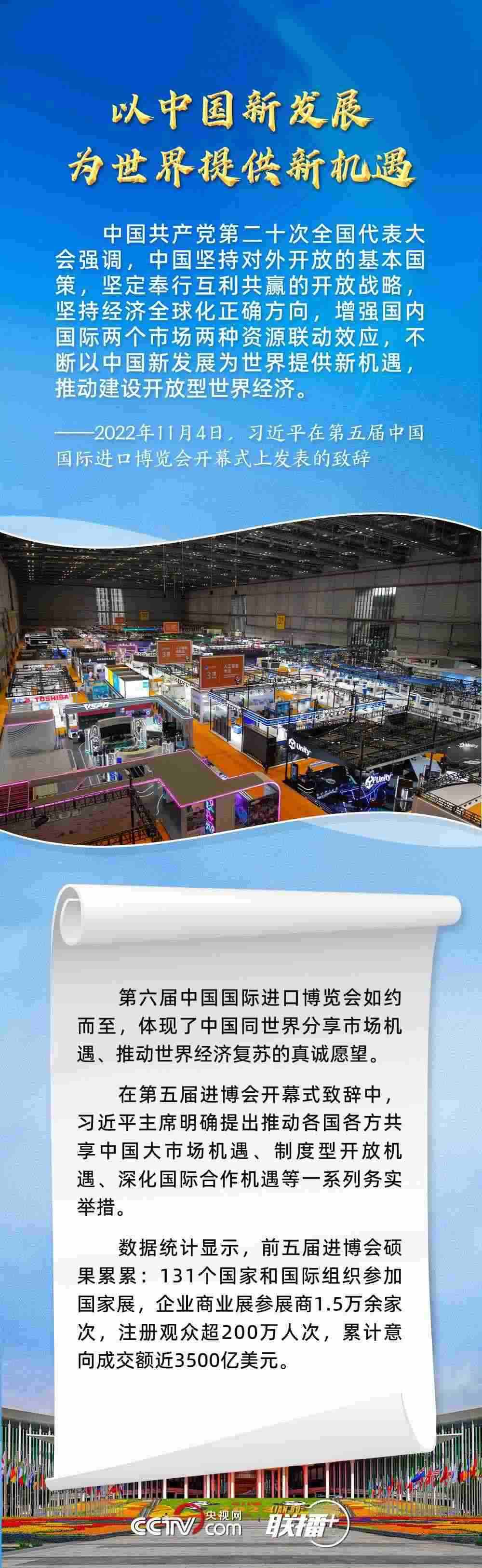 “中國擴大高水平開放的決心不會變,同世界分享發(fā)展機遇的決心不會變,推動經(jīng)濟全球化朝著更加開放、包容、普惠、平衡、共贏方向發(fā)展的決心不會變?!蔽迥陙恚?xí)近平主席在進(jìn)博會上宣布一系列重大開放舉措,充分彰顯了中國致力于促進(jìn)世界經(jīng)濟包容性增長,建設(shè)開放型世界經(jīng)濟的信心與決心。