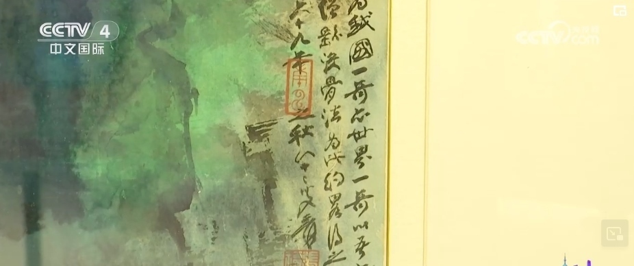 總臺(tái)央視記者 孫雨彤:這幅作品就是由張大千在1980年創(chuàng)作的《阿里山曉色》。張大千曾以“阿里山”為題材,創(chuàng)作出兩幀四尺整紙橫幅,這就是其中一件。畫上有題款“嘉義阿里山曉色為我國一奇,亦世界一奇”。