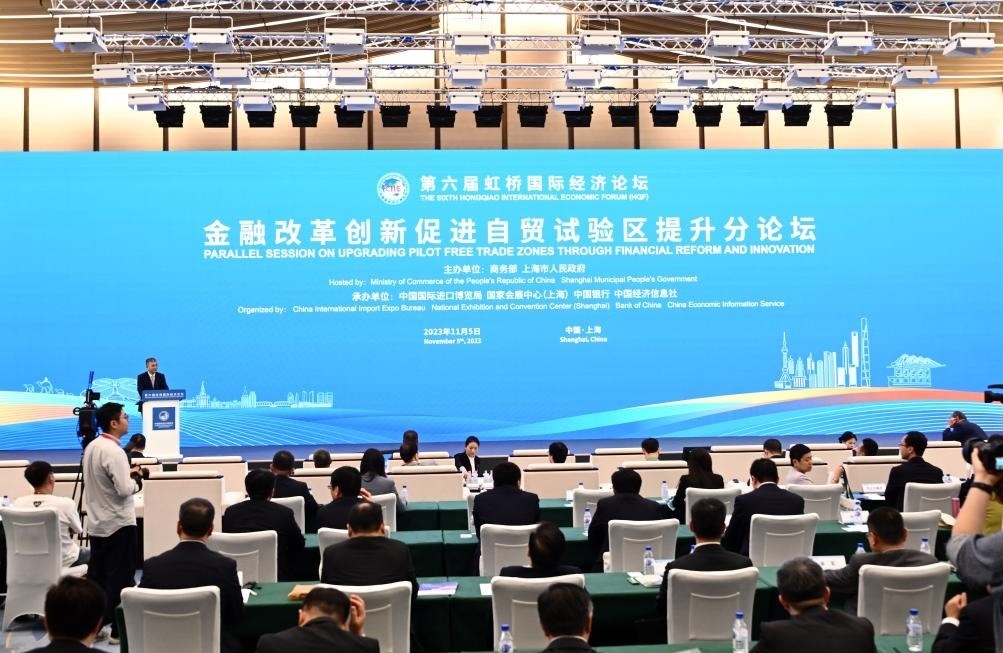 ?11月5日,第六屆虹橋國(guó)際經(jīng)濟(jì)論壇“金融改革創(chuàng)新促進(jìn)自貿(mào)試驗(yàn)區(qū)提升”分論壇在上海舉行。新華社記者 金良快 攝