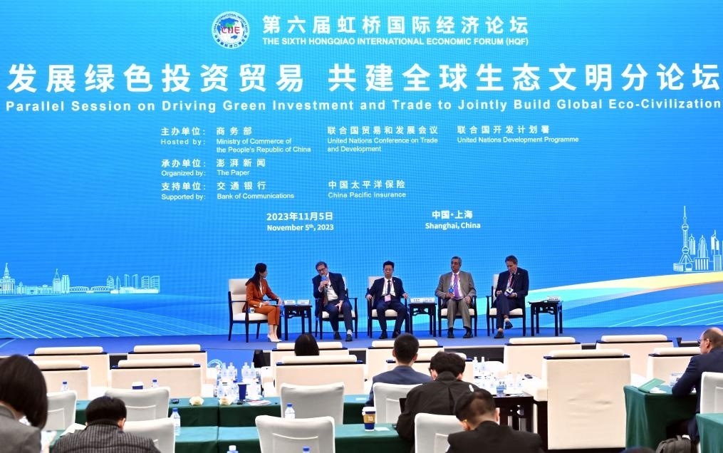 ?11月5日,第六屆虹橋國(guó)際經(jīng)濟(jì)論壇“發(fā)展綠色投資貿(mào)易 共建全球生態(tài)文明”分論壇在上海舉行。新華社記者 金良快 攝
