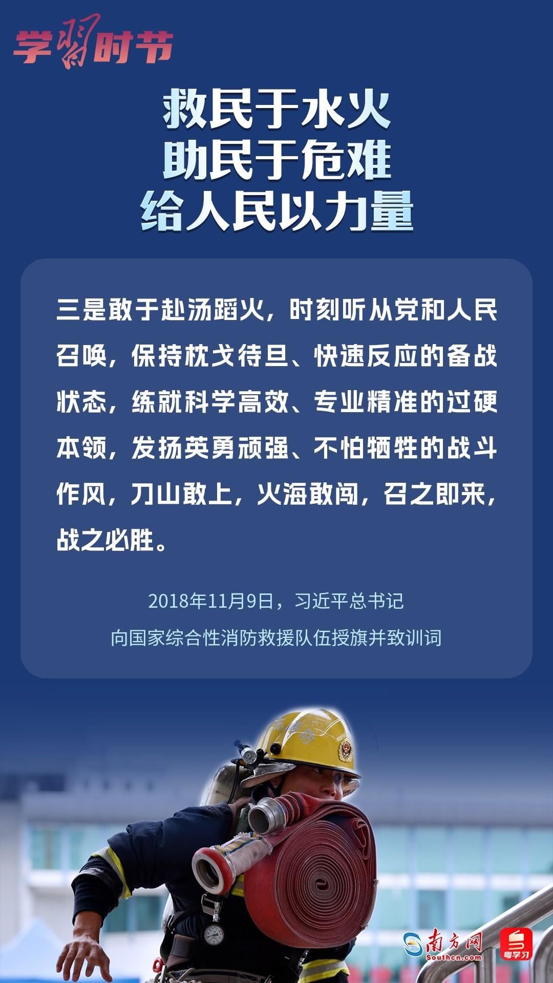 今年11月9日是習(xí)近平總書記為國家綜合性消防救援隊(duì)伍授旗并致訓(xùn)詞五周年,也是全國消防日。讓我們一起重溫總書記重要訓(xùn)詞,感受總書記對百姓安危的深情牽掛和對“火焰藍(lán)”的殷切期望。