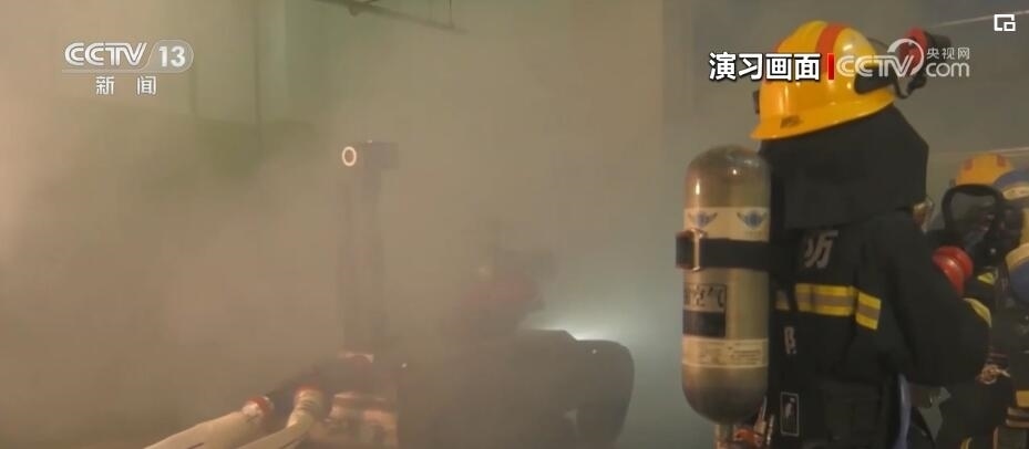 演習(xí)過程中,舉高噴射消防車從外部進(jìn)行滅火作業(yè)的同時(shí),多支消防救援小隊(duì)進(jìn)入商場(chǎng)內(nèi)部,在濃煙中實(shí)戰(zhàn)模擬火場(chǎng)搜救和滅火作戰(zhàn)。在救援人員的遙控指揮下,消防救援機(jī)器狗首先突入火場(chǎng),利用身上加裝的煙氣成分分析儀、攝像頭等多種設(shè)備,實(shí)時(shí)監(jiān)測(cè)環(huán)境危險(xiǎn)狀況,并對(duì)火場(chǎng)環(huán)境進(jìn)行偵察。在大火猛烈燃燒、建筑物結(jié)構(gòu)不穩(wěn)定情況下,消防救援人員遠(yuǎn)程控制無(wú)人滅火機(jī)器人首先進(jìn)入火場(chǎng),進(jìn)行前期滅火作業(yè)。為保障內(nèi)攻救援人員安全,消防員綜合定位系統(tǒng)也投入使用。每名消防員都攜帶平板終端和定位信標(biāo),指揮員可以實(shí)時(shí)掌握進(jìn)入火場(chǎng)人員的生命體征、實(shí)時(shí)位置。一旦救援人員遇險(xiǎn),系統(tǒng)能夠第一時(shí)間引導(dǎo)緊急救援小組展開營(yíng)救行動(dòng)。