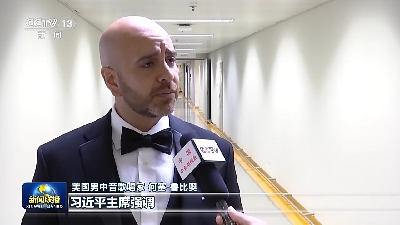 美國男中音歌唱家 何塞·魯比奧:習近平主席強調,音樂跨越國界。在我看來,音樂就是我們的共同語言。我們用中文演唱詩詞時,音樂成了我們了解彼此的橋梁,也成了不同文化互尊互鑒、相互理解的生動詮釋。