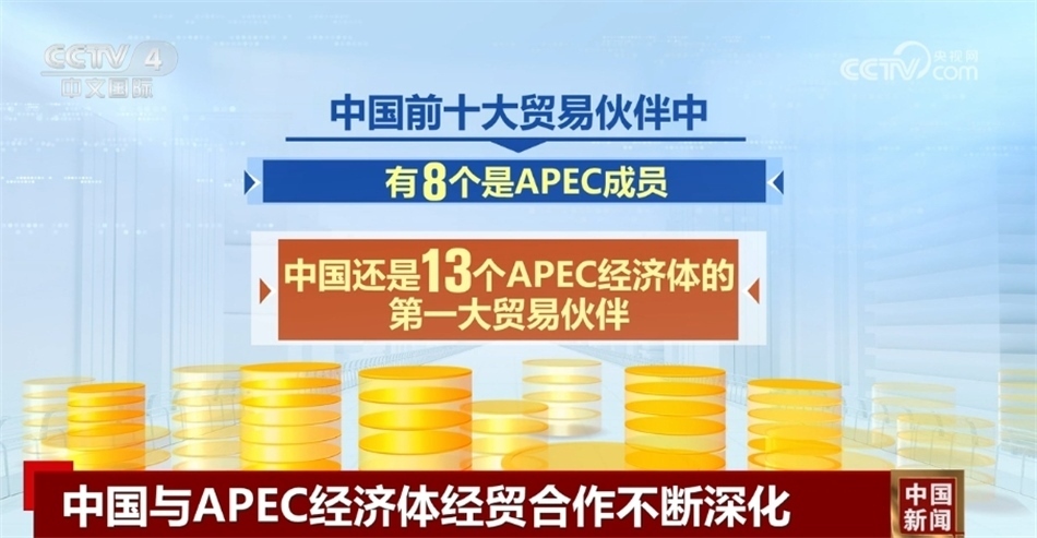 央視網(wǎng)消息:亞太經(jīng)合組織第三十次領(lǐng)導(dǎo)人非正式會議即將召開,記者從商務(wù)部等部門了解到,近年來,中國與其他20個APEC經(jīng)濟體不斷深化經(jīng)貿(mào)合作,為建設(shè)亞太經(jīng)濟持續(xù)貢獻中國力量。