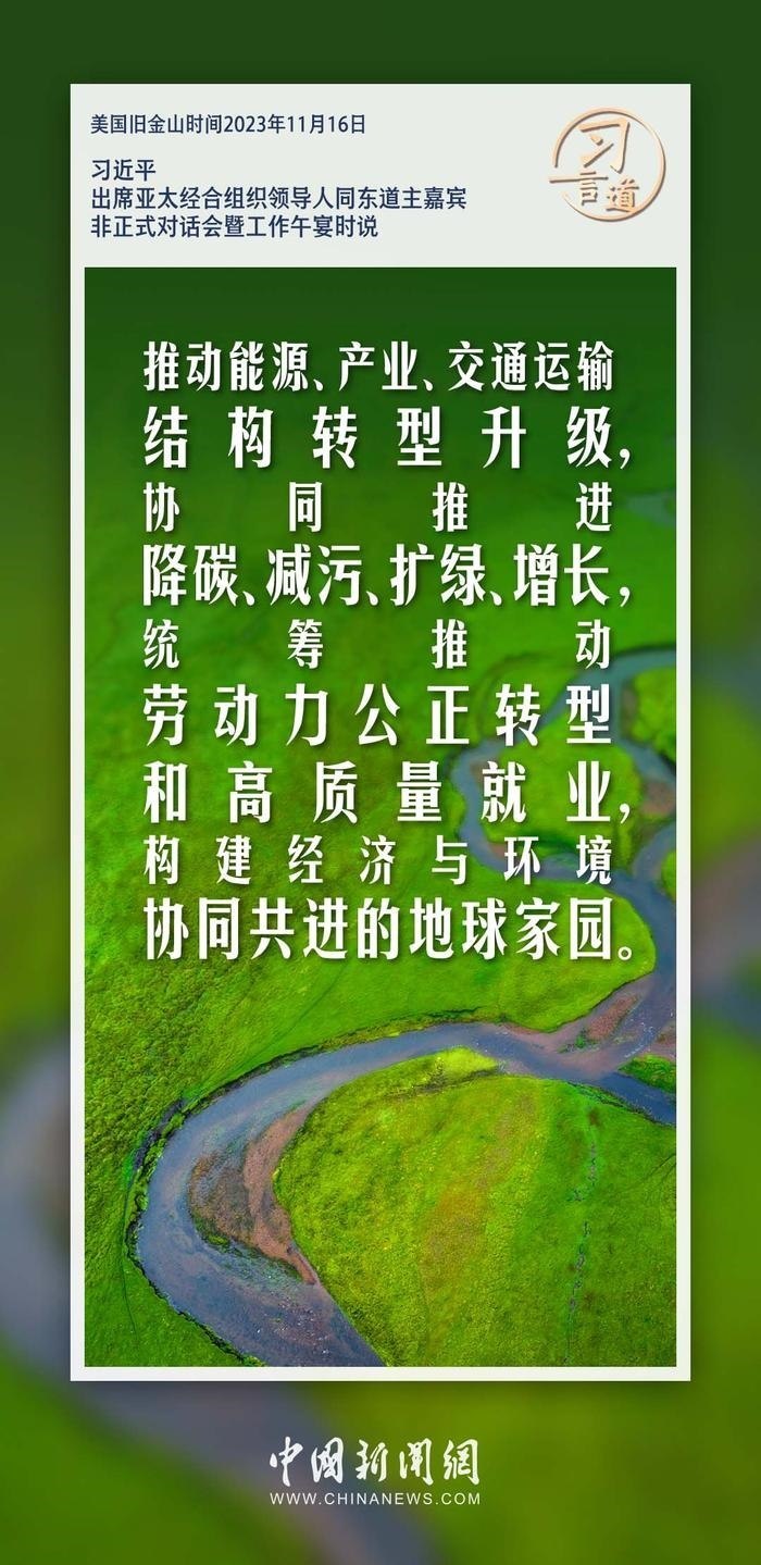 當?shù)貢r間11月16日中午,中國國家主席習近平在舊金山出席亞太經(jīng)合組織領導人同東道主嘉賓非正式對話會暨工作午宴。習近平指出——