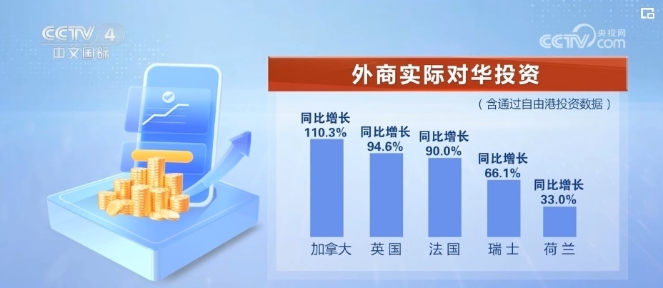 盡管部分指標(biāo)出現(xiàn)波動,但外商來華投資熱度不減。加拿大、英國、法國、瑞士、荷蘭實際對華投資同比分別增長110.3%、94.6%、90%、66.1%、33%。