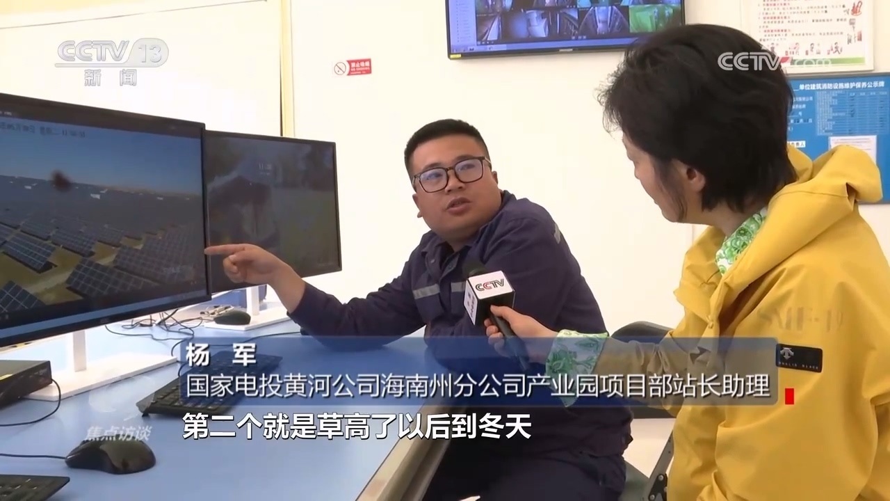 國家電投黃河公司海南州分公司產(chǎn)業(yè)園項(xiàng)目部站長助理?xiàng)钴姡骸肮夥逑旅孢@些羊,就是我們請(qǐng)過來幫忙除草的。因?yàn)槊磕暌坏较奶欤瑘@區(qū)電池組件下面草就特別高,長高了以后會(huì)遮擋電池組件,一個(gè)是影響發(fā)電效率,再一個(gè)秋冬季有火災(zāi)隱患?!?/p>
