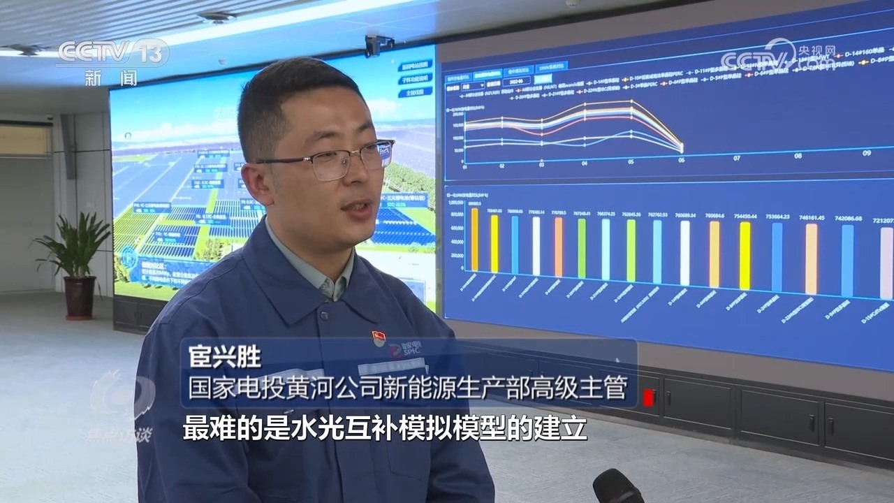 國家電投黃河公司新能源建設(shè)分公司黨委書記、副總經(jīng)理王倫:“怎么解決這個(gè)問題呢?我們有多年水電開發(fā)建設(shè)運(yùn)行的經(jīng)驗(yàn),是不是可以依靠水電這個(gè)老大哥,它本領(lǐng)強(qiáng)、能力大,把新能源小弟帶一帶?后來就猜想是不是可以實(shí)現(xiàn)‘水光互補(bǔ)’,通過優(yōu)質(zhì)的水電帶動(dòng)相對(duì)能力比較差、波動(dòng)性、間歇性比較強(qiáng)的新能源,一塊共同健康發(fā)展?!?/p>
