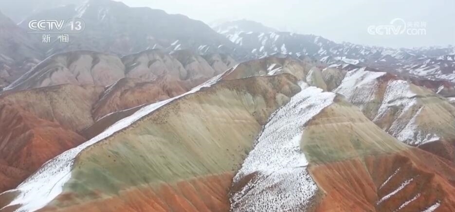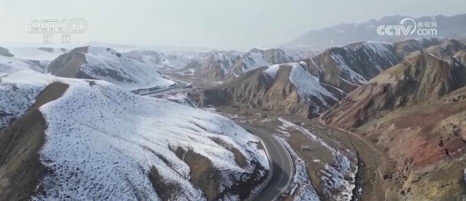 近日,一場大雪讓昌吉百里丹霞風景道如同童話世界一般。沿著S101省道一路向西,從高處俯瞰丹霞,高山南北坡呈現(xiàn)截然不同的風光。雪落北坡把層巒疊嶂的山脈裝扮得如水墨丹青,而南坡陽光普照,五彩丹霞盡顯婀娜多姿。