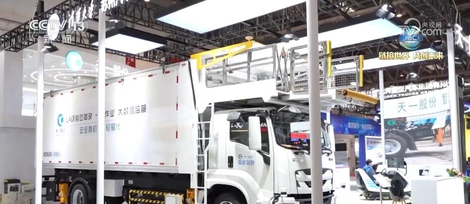 總臺(tái)央視記者 張歆:在本屆鏈博會(huì)上,我們也看到了許多智能專用車。大家可以看到在我身旁就是一臺(tái)智能航空食品專用車,這臺(tái)重量達(dá)到21噸左右的“大塊頭”裝了許多個(gè)雷達(dá),通過5G的算法就能夠?qū)崿F(xiàn)無人駕駛和無人作業(yè)。