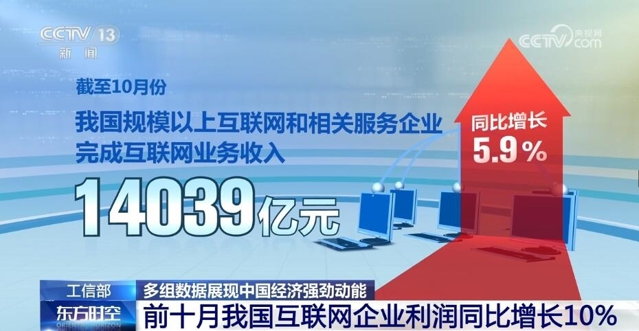前十月我國互聯(lián)網企業(yè)利潤同比增長10%