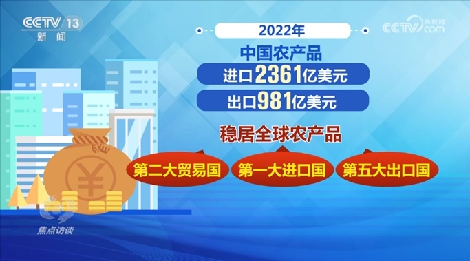 數(shù)據(jù)顯示,2001年至2022年,中國(guó)農(nóng)產(chǎn)品貿(mào)易額年均增長(zhǎng)12.6%,農(nóng)產(chǎn)品出口額年均增長(zhǎng)9.1%,進(jìn)口額年均增長(zhǎng)15.4%。2022年,中國(guó)農(nóng)產(chǎn)品進(jìn)口2361億美元,出口981億美元,穩(wěn)居全球農(nóng)產(chǎn)品第二大貿(mào)易國(guó)、第一大進(jìn)口國(guó)、第五大出口國(guó)。糧食安全的穩(wěn)定性,離不開(kāi)農(nóng)業(yè)供應(yīng)鏈的安全可控。