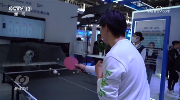 數(shù)字科技鏈的展館有一臺(tái)全球首款擬人型發(fā)球機(jī)器人,能實(shí)時(shí)捕捉高速乒乓球的軌跡,生成專業(yè)報(bào)告,數(shù)字科技讓運(yùn)動(dòng)變得更加有趣。