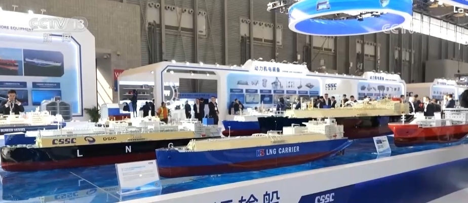 總臺央視記者 吳天白:在展館內(nèi)可以看到不同種類的世界先進船型和發(fā)動機等船用配套設(shè)施設(shè)備。本屆展會參展商有42%是境外企業(yè),不僅是國際船舶海工產(chǎn)業(yè)技術(shù)發(fā)展趨勢的“風(fēng)向標(biāo)”,更為中國與國際客戶間的合作搭建了“橋梁”。