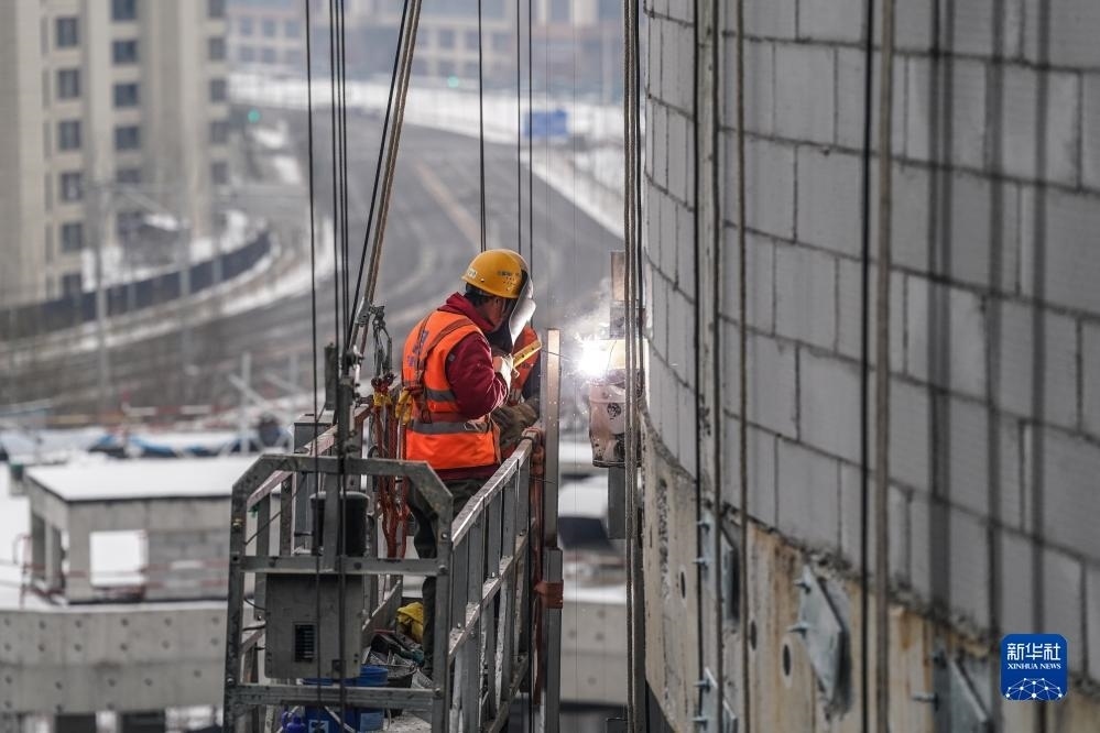 12月12日,工人在位于北京市海淀區(qū)的一處工地上進(jìn)行施工作業(yè)。