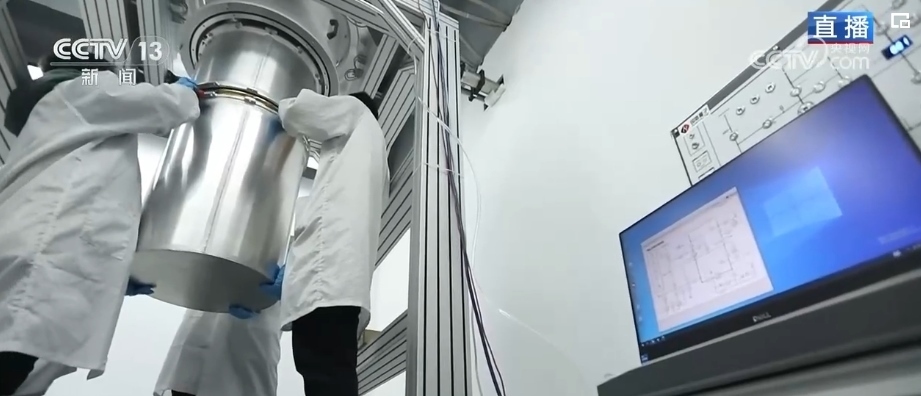 完成復(fù)雜的運(yùn)算僅靠主板是不夠的。量子芯片相當(dāng)于傳統(tǒng)計(jì)算機(jī)的CPU,也就是“大腦”,但是想讓芯片正常工作,所需要的環(huán)境是非常苛刻的。在現(xiàn)場(chǎng),工作人員正在調(diào)試的就是給這塊芯片提供理想工作環(huán)境的低溫低噪運(yùn)行裝置,芯片就是在這個(gè)白色圓桶狀主體內(nèi)工作,圓筒里會(huì)形成接近“絕對(duì)零度”,也就是約在零下273.15℃的環(huán)境,并且還要與外界屏蔽隔離。除了低溫、低噪之外,這套系統(tǒng)上還安裝了很多減震設(shè)備,也是最大程度避免外界環(huán)境影響到芯片的運(yùn)行。