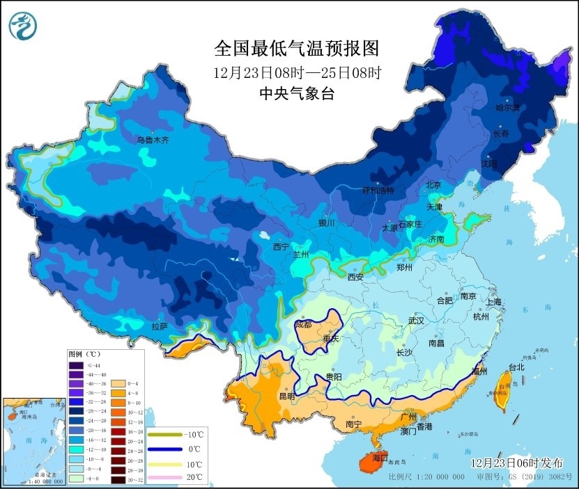 央視網(wǎng)消息:中央氣象臺12月23日06時發(fā)布低溫藍色預警:預計,12月23日08時至25日08時,內(nèi)蒙古河套地區(qū)、陜西北部、華北西部和中南部、東北地區(qū)南部、黃淮及其以南大部地區(qū)日最低氣溫或平均氣溫較歷史同期偏低5℃以上,其中,內(nèi)蒙古河套地區(qū)、遼寧北部、河北中南部、江南大部、華南北部等地的部分地區(qū)偏低7℃以上,最低氣溫0℃線將位于貴州西南部至華南北部一帶。