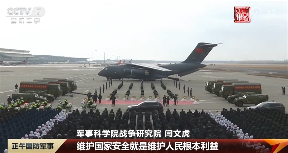 守護(hù)國防安全,我們每個人都是衛(wèi)士。今年11月,我們第十次迎回了抗美援朝保家衛(wèi)國的烈士遺骸。11月23日上午,遼寧沈陽桃仙國際機(jī)場,兩架殲-20戰(zhàn)機(jī)護(hù)航運-20運輸機(jī)呼嘯而來,運-20降落,緩緩?fù)ㄟ^水門,以最高禮儀致敬英烈。