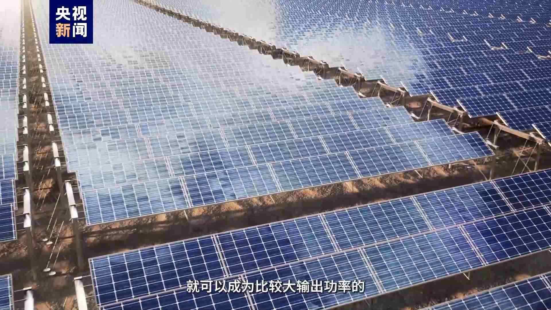 治沙完成后,陽(yáng)光照射在光伏板上,源源不斷地轉(zhuǎn)換出電能,當(dāng)許許多多的光伏板聯(lián)系起來(lái),就可以成為比較大的輸出功率的太陽(yáng)能電池方陣,最后通過(guò)升壓站,將電傳輸?shù)角Ъ胰f(wàn)戶。