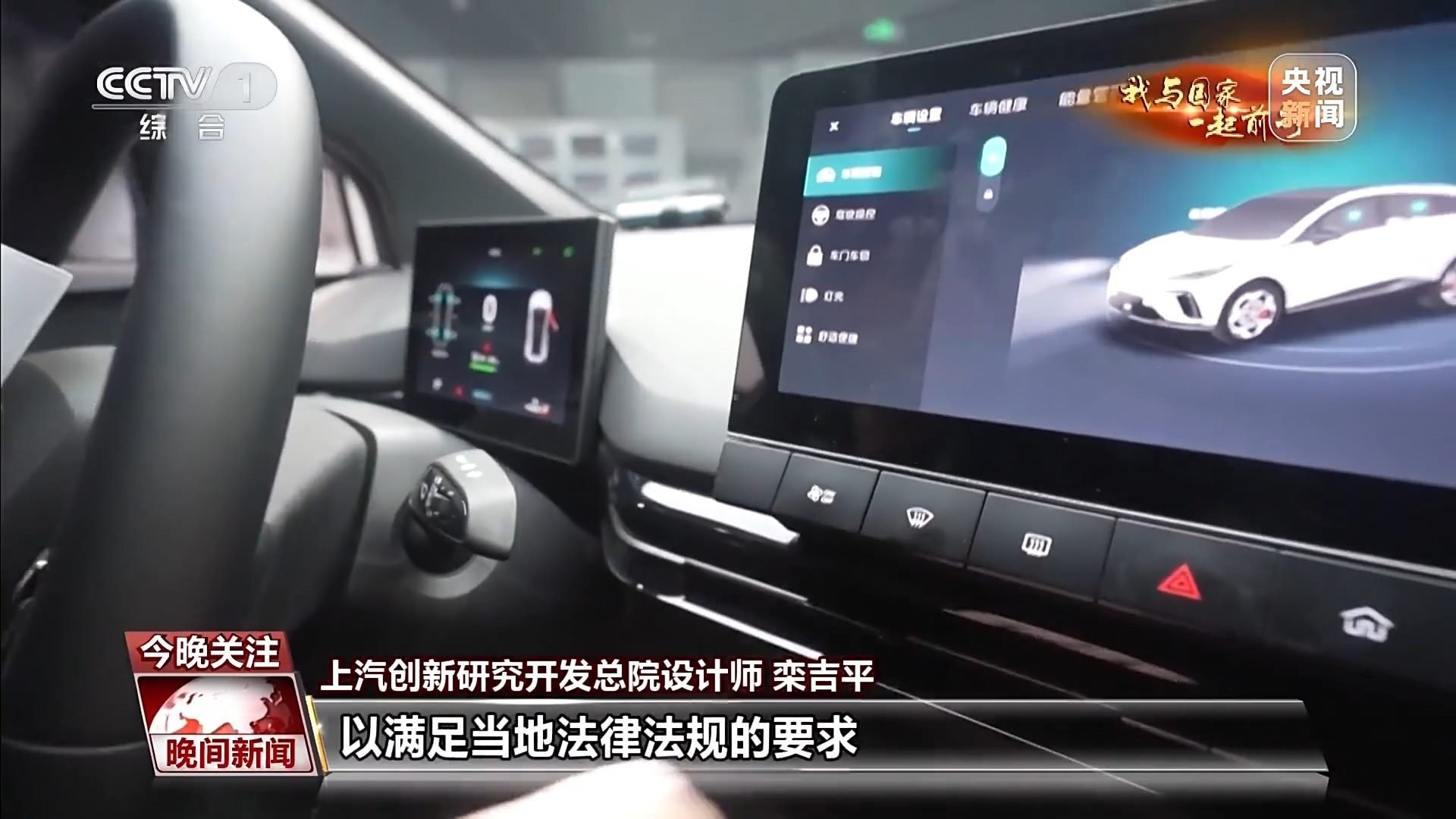 上汽創(chuàng)新研究開發(fā)總院設(shè)計(jì)師 欒吉平:比如說在英國,大霧天氣,整個(gè)后擋窗我們會(huì)增加雨刮器。比如在中東,塵暴天氣會(huì)比較多一些,在整個(gè)后邊的零件的硬度上面我們會(huì)增加。而在泰國我們更改了按鍵圖標(biāo),以滿足當(dāng)?shù)胤煞ㄒ?guī)的要求。