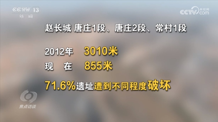 數據顯示:2012年,河南省認定趙長城唐莊1段、唐莊2段、常村1段,三段長城實際共存在3010米,而現在,遺址僅存在855米,71.6%長度的遺址已遭到不同程度破壞,令人無比痛心。