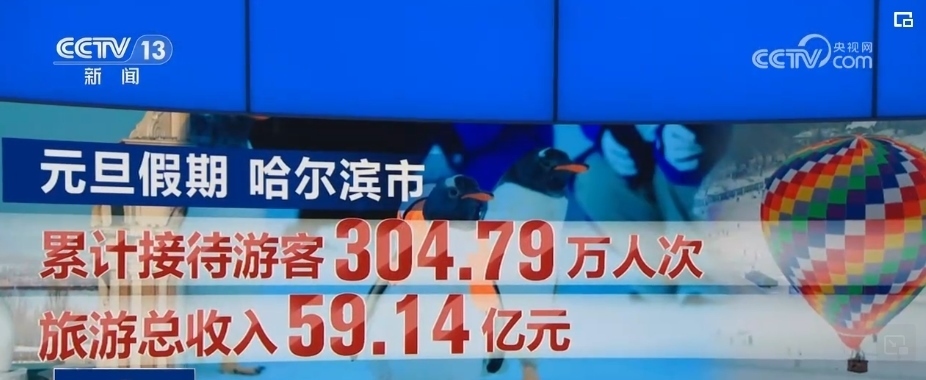 元旦期間,哈爾濱中央大街人山人海。東北虎林園、哈爾濱極地公園、松花江冰雪嘉年華、太陽島雪博會,也都成為熱門的旅游目的地。