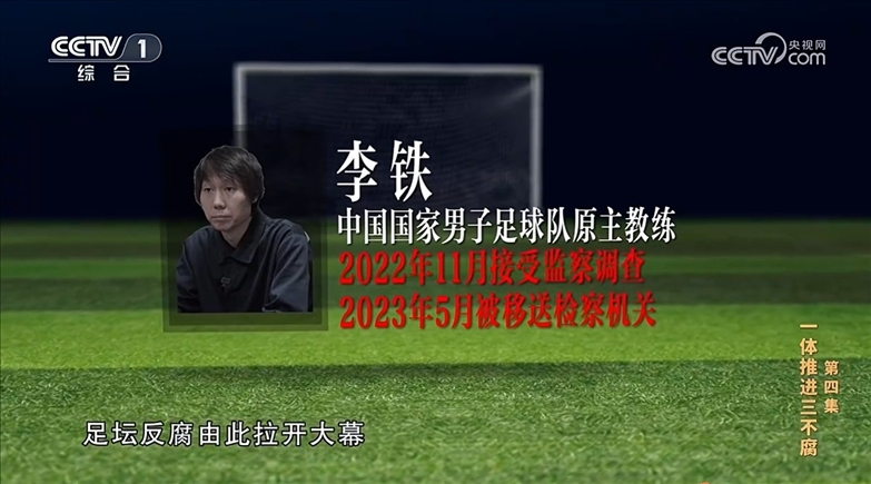 【解說詞】李鐵是本次專案第一個接受監(jiān)察調(diào)查并被留置的人員,事實證明,這個切入點的選擇是非常精準(zhǔn)的。他既在多家俱樂部擔(dān)任過教練,又曾擔(dān)任中國國家男子足球隊主教練,在足球領(lǐng)域關(guān)系盤根錯節(jié),以他為突破口縱深挖掘、橫向拓展,牽出了從聯(lián)賽到國家隊、從俱樂部到足協(xié)的若干涉嫌違紀(jì)違法犯罪人員,以及種種黑幕和制度漏洞。