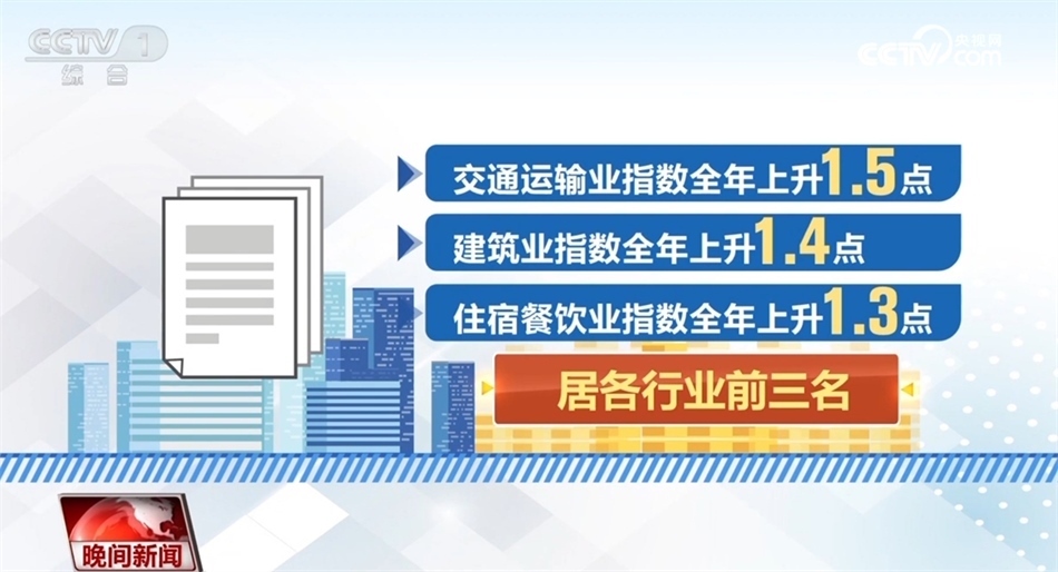 2023年中國中小企業(yè)發(fā)展指數(shù)各分項指數(shù)和分行業(yè)指數(shù)全面向好。其中,綜合經(jīng)營指數(shù)全年上升1.9點,宏觀經(jīng)濟感受指數(shù)全年上升1.8點,投入指數(shù)全年上升1.5點。顯示在政策的支持下,中小企業(yè)投入在增加,經(jīng)營業(yè)績也在逐步改善。而從調(diào)查的國民經(jīng)濟八大行業(yè)來看,交通運輸業(yè)指數(shù)全年上升1.5點,建筑業(yè)指數(shù)全年上升1.4點,住宿餐飲業(yè)指數(shù)全年上升1.3點,居各行業(yè)前三名。