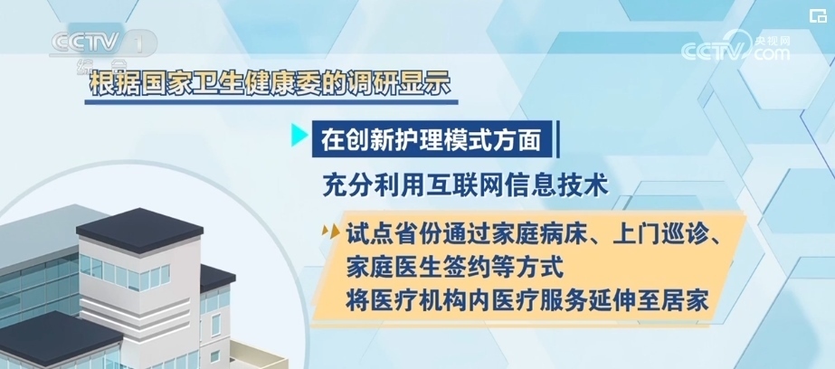 在創(chuàng)新護(hù)理模式方面,充分利用互聯(lián)網(wǎng)信息技術(shù),試點(diǎn)省份通過(guò)家庭病床、上門巡診、家庭醫(yī)生簽約等方式,將醫(yī)療機(jī)構(gòu)內(nèi)醫(yī)療服務(wù)延伸至居家。目前,共計(jì)有3000多個(gè)醫(yī)療機(jī)構(gòu),可以上門為居家老年人提供7大類60多項(xiàng)醫(yī)療護(hù)理服務(wù)項(xiàng)目,減輕了患者和家屬的負(fù)擔(dān)。