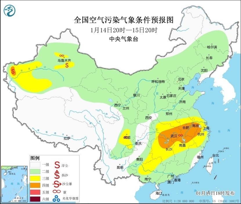 央視網(wǎng)消息:1月14日,中央氣象臺(tái)發(fā)布環(huán)境氣象公報(bào),14日夜間至15日,受上游污染物傳輸影響,江漢、江南中西部、華南西部等地先后會(huì)出現(xiàn)短時(shí)輕至中度霾。未來一周,全國其余大部地區(qū)大氣擴(kuò)散和濕清除條件總體較好。