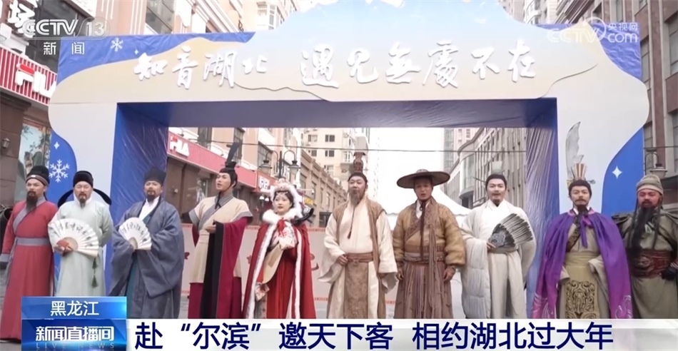 這些天,一群來自湖北的特殊游客抵達(dá)黑龍江哈爾濱,開啟他們的冰雪之旅。他們是湖北省文化和旅游廳組織扮演的“歷史名人天團(tuán)”,既有屈原、伯牙子期等,也有李白、蘇東坡等曾在湖北留下著名詩篇的文人。他們在中央大街聚首,“拼”詩詞展音律,傳遞傳統(tǒng)文化之美。在暢享北國風(fēng)光的同時(shí),也為游客們送上一場超級(jí)文旅秀和文旅大禮包,邀請(qǐng)全國游客“去湖北過大年”。