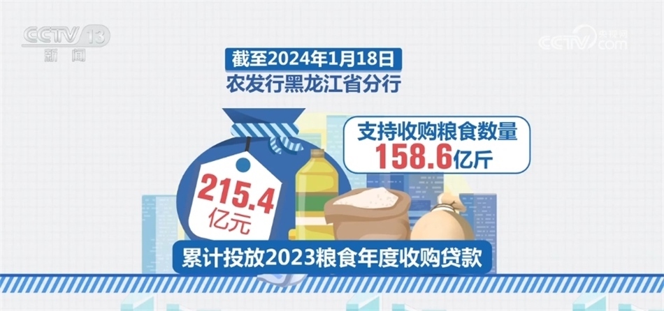 黑龍江是我國秋糧主產(chǎn)區(qū)。截至2024年1月18日,農(nóng)發(fā)行黑龍江省分行累計(jì)投放2023糧食年度收購貸款215.4億元,支持收購糧食數(shù)量158.6億斤。其中,累計(jì)投放政策性貸款72.7億元,累計(jì)投放市場(chǎng)化貸款142.7億元。