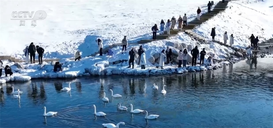 總臺(tái)記者 李楠:這里就是天山環(huán)抱中的新疆賽里木湖景區(qū),周?chē)娜荷胶秃嫒耘f被冰雪覆蓋。在我身后正在舉辦冰雪“那達(dá)慕”迎春活動(dòng),當(dāng)?shù)氐霓r(nóng)牧民群眾和來(lái)自全國(guó)各地的游客正參與其中。