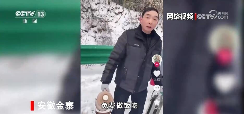 央視網(wǎng)消息:這幾天,很多人都在回家的路上遭遇了雨雪冰凍天氣,有的甚至在高速路上被困了十多個小時。面對這種情況,各地交通部門都在積極采取措施,為返鄉(xiāng)車輛做好保障。而與此同時,很多受災(zāi)道路附近的居民紛紛走出家門,為這些受困人員送來熱水、飯菜。接下來,我們通過一組短視頻,來看一下發(fā)生在暴雪之中的溫暖故事。
