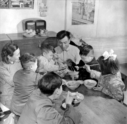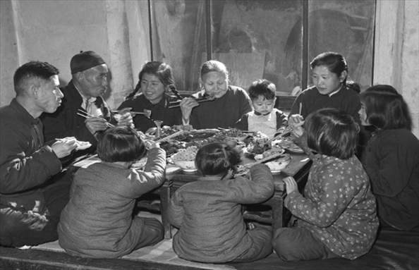 1960年,遼寧鞍鋼老工人于德舉一家在吃年夜飯。為過(guò)年準(zhǔn)備一頓豐盛的飯菜是當(dāng)時(shí)人們頗費(fèi)腦筋的事。