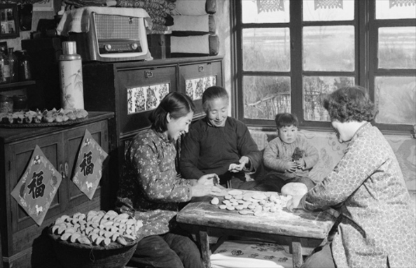 1962年,遼寧開(kāi)原一戶居民在包餃子。