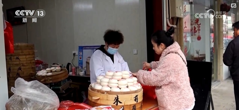 對(duì)于當(dāng)?shù)厝藖?lái)說(shuō),買(mǎi)“紅印饅頭”的日子也就是闔家團(tuán)聚的日子。一大桌子的年夜飯,“紅印饅頭”是壓軸菜,不少市民專程前來(lái)備年貨。