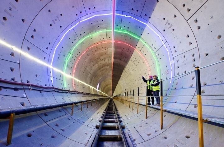 2024年2月3日,工作人員在北京軌道交通22號(hào)線河北段盾構(gòu)隧道內(nèi)進(jìn)行巡查。新華社記者 王曉 攝
