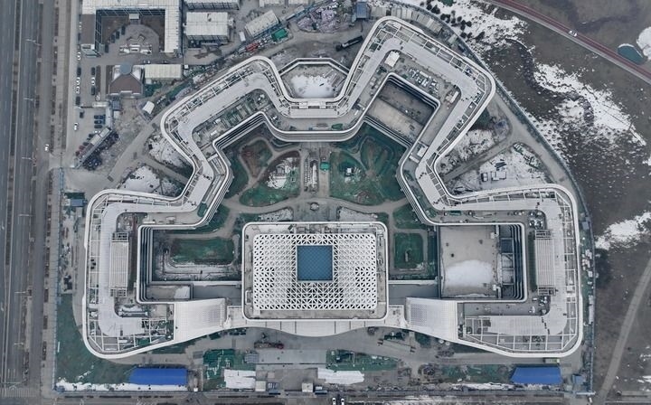 這是位于雄安新區(qū)啟動(dòng)區(qū)內(nèi)的中國(guó)衛(wèi)星網(wǎng)絡(luò)集團(tuán)有限公司總部大樓建設(shè)現(xiàn)場(chǎng)(2024年1月31日攝,無(wú)人機(jī)照片)。新華社記者 牟宇 攝
