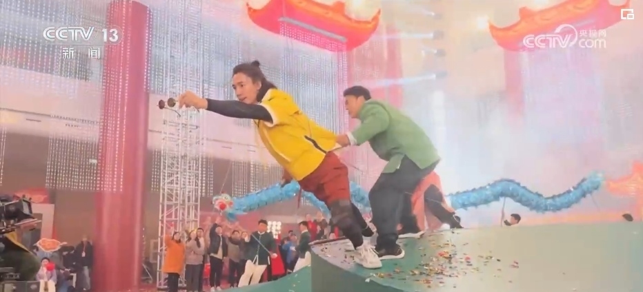 央視網(wǎng)消息:中央廣播電視總臺《2024年春節(jié)聯(lián)歡晚會》武術(shù)節(jié)目《爭春》由袁和平作為監(jiān)制,樊少皇、吳樾、此沙三位演員與塔溝武校的學(xué)員們,分為三支舞龍隊(duì)比拼武藝、以武爭春。節(jié)目中再現(xiàn)經(jīng)典武術(shù)招式,同時融入了更多生活化的情節(jié),一招一式剛?cè)岵?jì),盡顯春日里萬物競發(fā)勃勃生機(jī)。