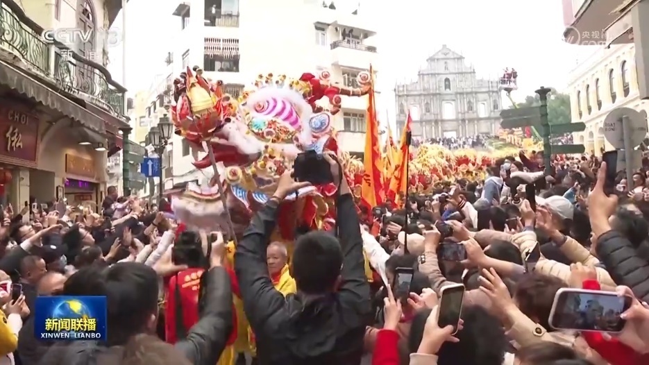 今天,澳門舉辦“歡樂春節(jié)——2024年龍騰舞躍賀新春”社區(qū)巡演活動,一條長達238米的金龍和18頭醒獅從大三巴牌坊同時出發(fā),途經(jīng)澳門多個主要景點,與眾多市民和游客一起慶祝龍年新春佳節(jié)。